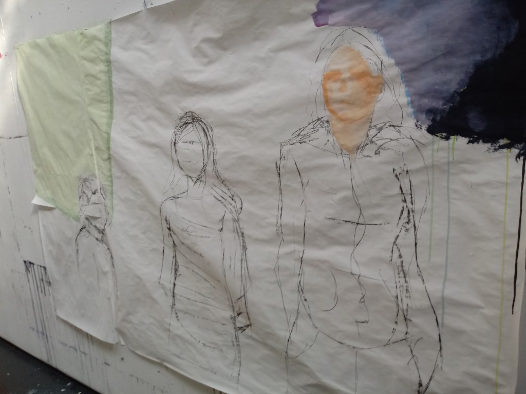 I drew this image with my tablet on an app called ( sketch). The idea was to have half a life sized model made of different colored fabrics and hand stitch patterns on to it.