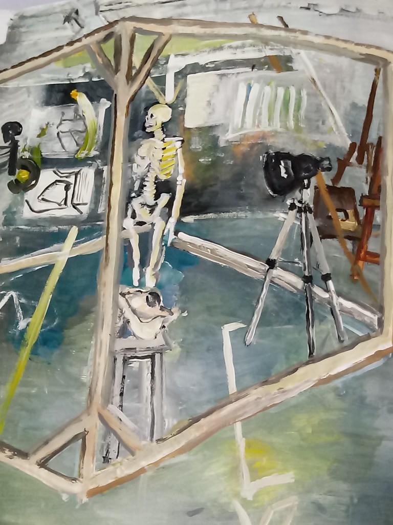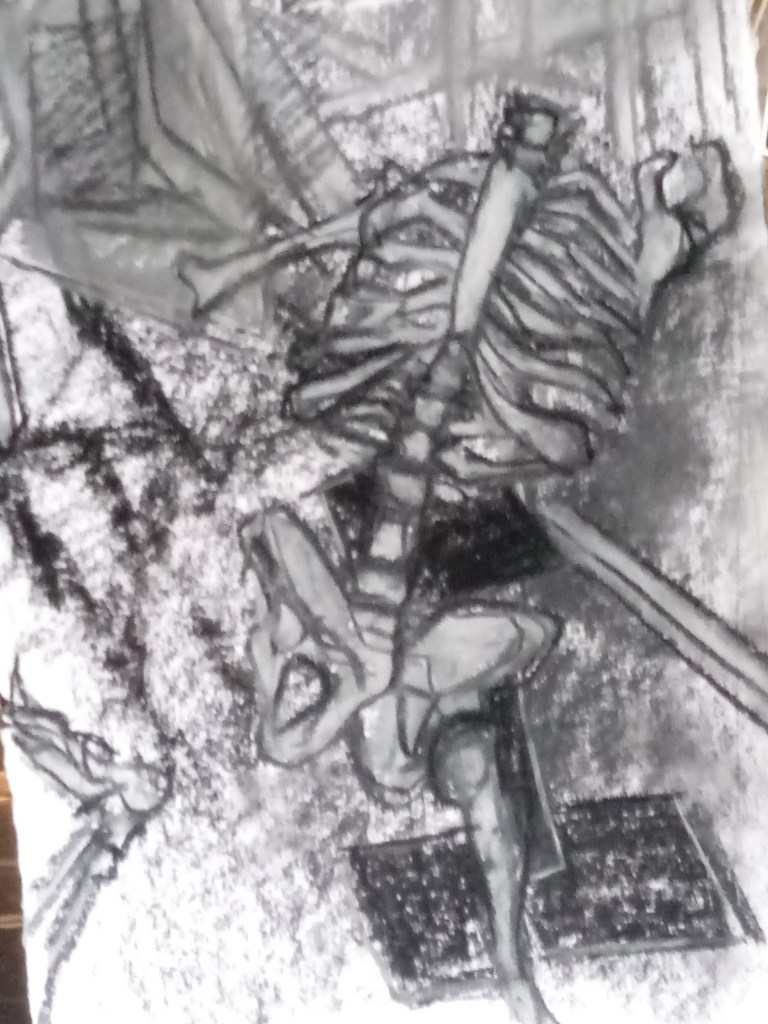 The skeleton was introduced as soon as the model could not continue the classes. I found the skeleton very interesting to draw.