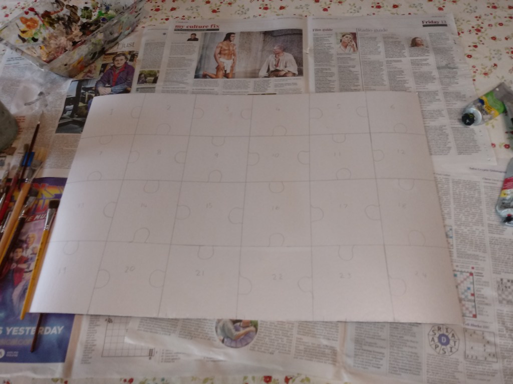 The plan is to paint on card and then cut out jigsaw pieces.