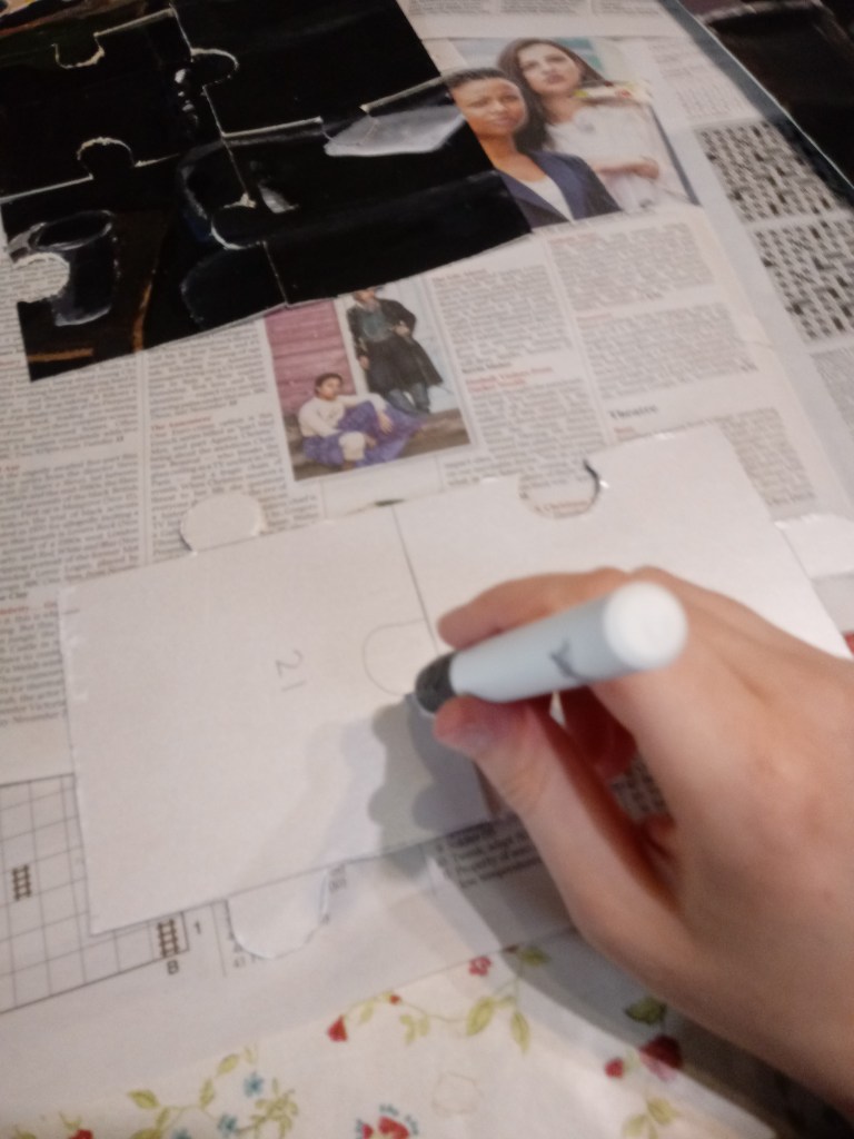 I copied the jigsaw patterns from the internet. I put numbers in case I can’t put the pieces together quick enough.