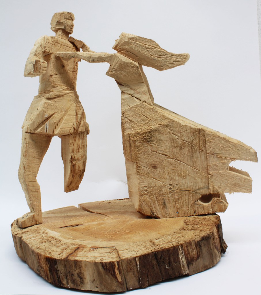 This is a statue I made for my Final Major Project. It’s made of Laylandii wood. It’s based on the romantic Greek mythology Ceyx and Alcyone. This was made over the first pandemic in 2020.