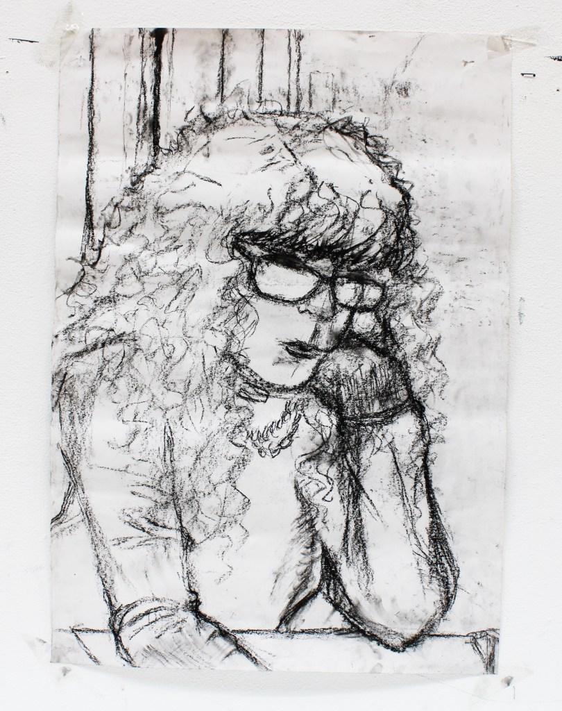 This is a charcoal drawing I made 2019 on my first day of Level 3 year. The task was to get a partner and copy them throughout the whole day. Size, A2 sheet of paper