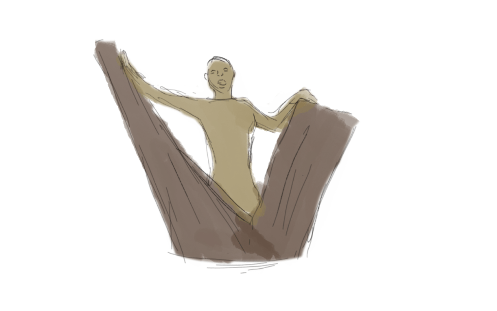 This idea is based on a different media because I wanted to explore different medias. This is a picture of a wood sculpture tearing through a plank of wood out of anger and frustration, it represents breaking free.