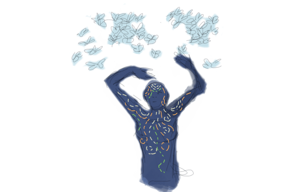 I wanted to explore the opposite of my last idea and have this idea represent intrusive thoughts. The butterfly’s represent intrusive thoughts and the model is desperately trying to swot them away. I feel this can be very relatable to people with mental health issues and that this could be a representation of mental health awareness and tell the audience that we are not alone and that people that currently deal with intrusive thoughts are very strong. The idea was becoming emotional and I preferred it because I am very interested in emotions, expressions and feelings and I want my FMP to be memorable, to make people feel how I feel about it and connect and relate to my audience.