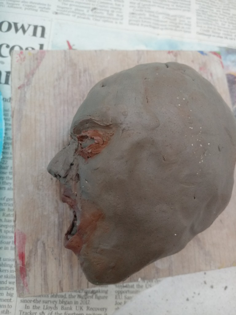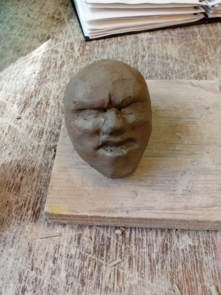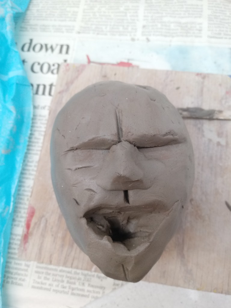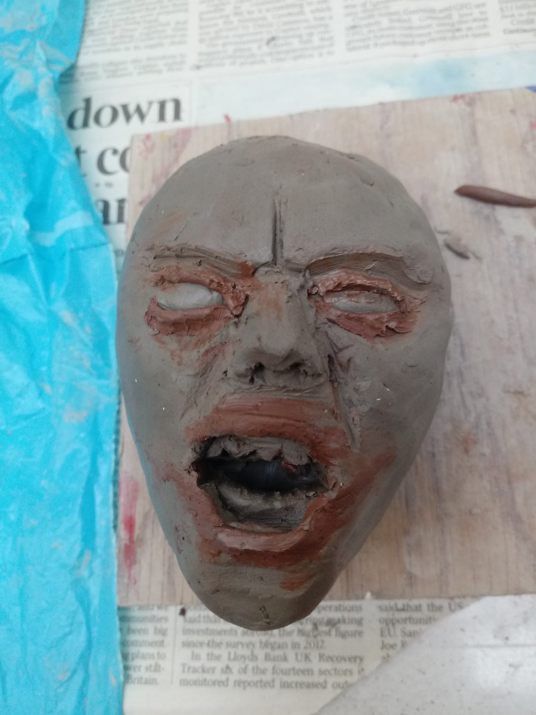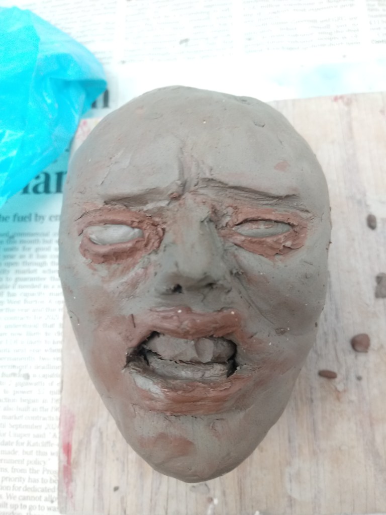 I began experimenting with clay and sculpturing faces with negative expressions to practice for my FMP.