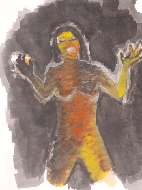 I believe there was too much water on the page so that’s why it is difficult to see the face. I tried my best to reflect the colour’s well like in the image of the statue holding a fire ball.